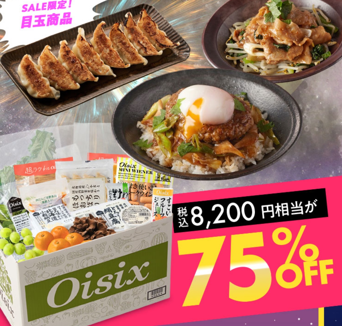 Oisix(オイシックス)のおためしセットです。初めての方限定で、人気の食材やミールキットを